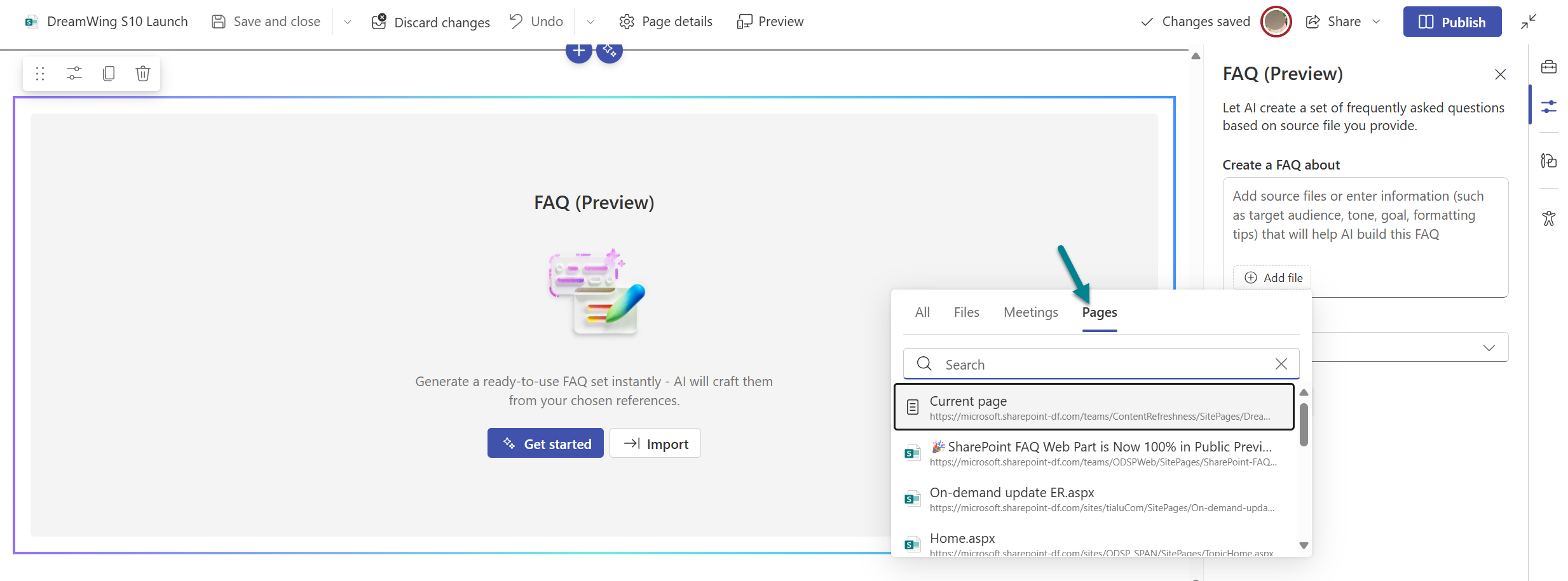 You can now use SharePoint pages as grounding sources for FAQs. This means you can pull content from existing news posts or site pages, even across different sites.